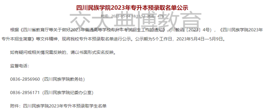 快看有没有你!四川民族学院2023年专升本预录取名单公示